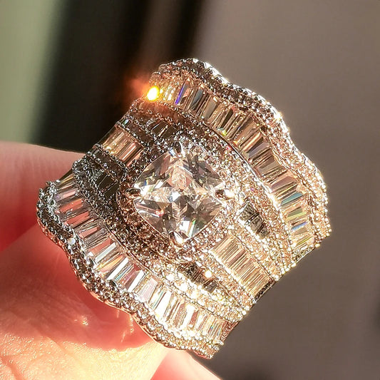 Huitan Gorgeous Cushion Blue/White CZ Wedding Rings for Women Sparkling Engagement Party Lady Accessories Modern Fashion Jewelry