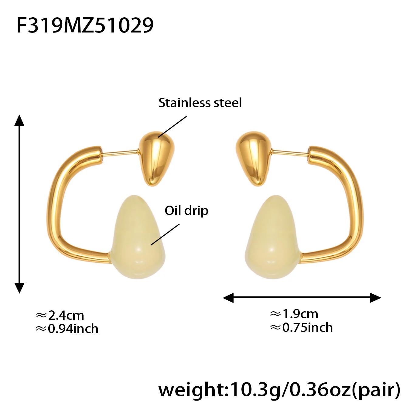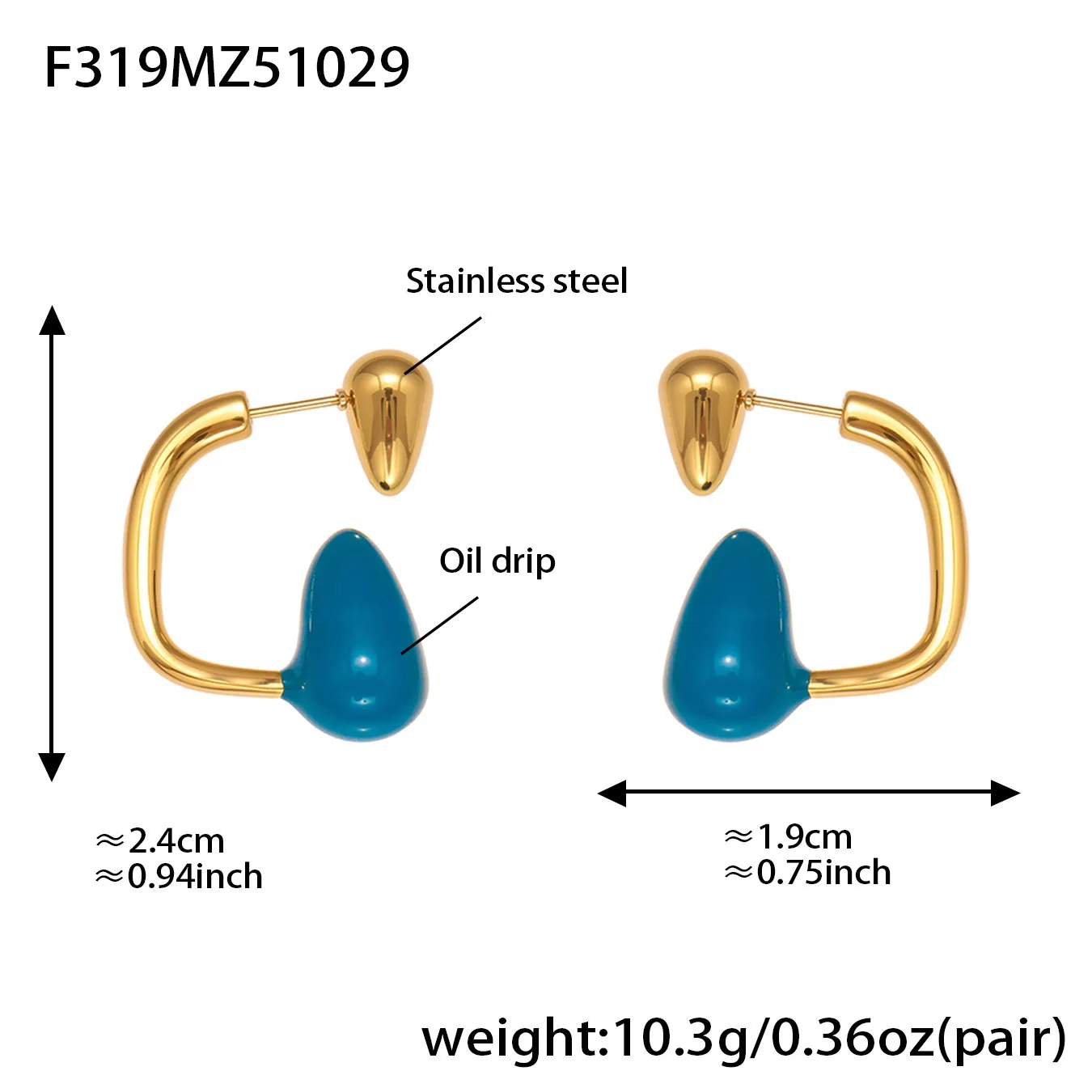 Ars Stainless Steel Water Drop Earrings for Women 18K Gold Plated Enamel Earring Statement Stud Earring No Tarnish Earrings