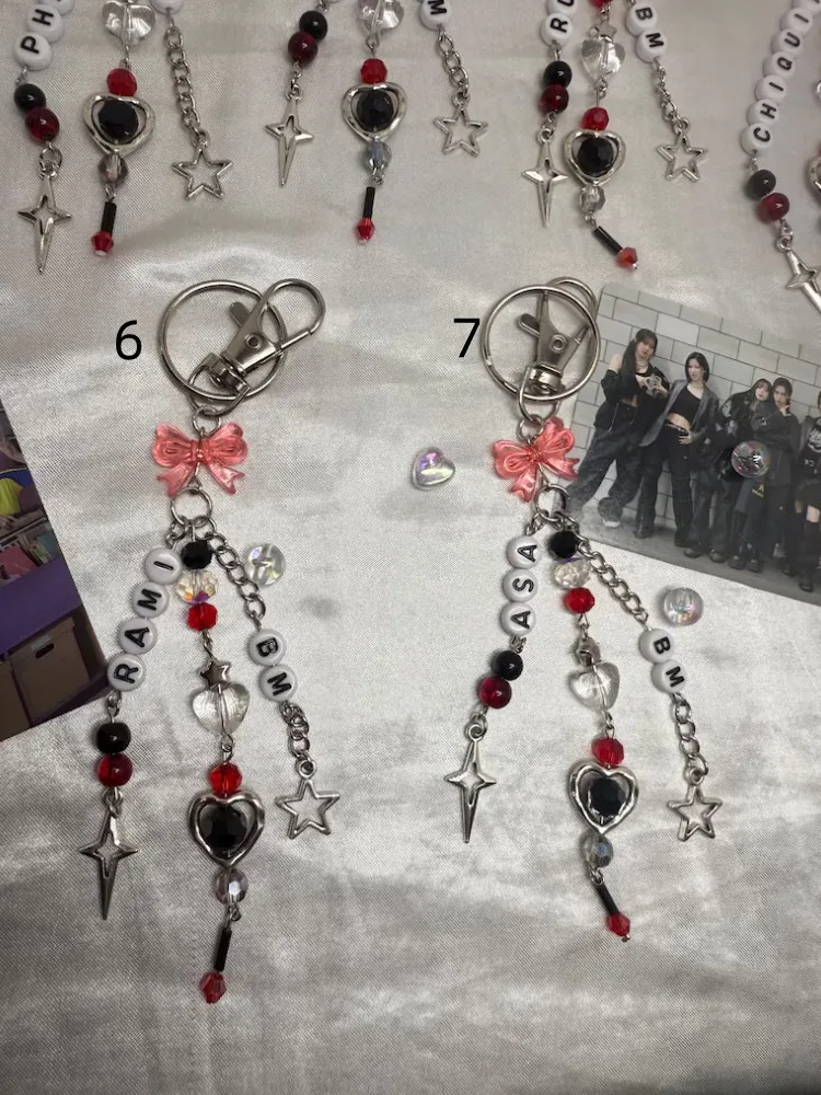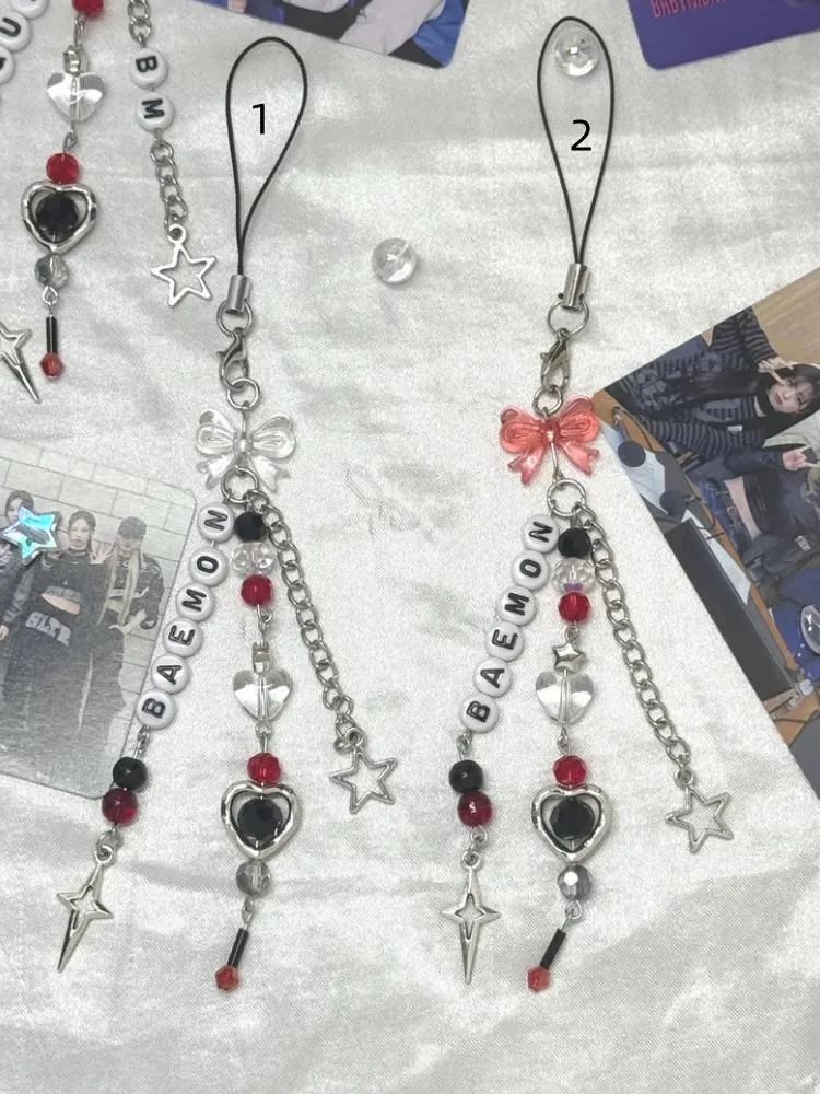 Baby Monster 1st US Tour Hello Monster inspired phone charm, light stick charm keychain. Free to customize and is available in white and red.