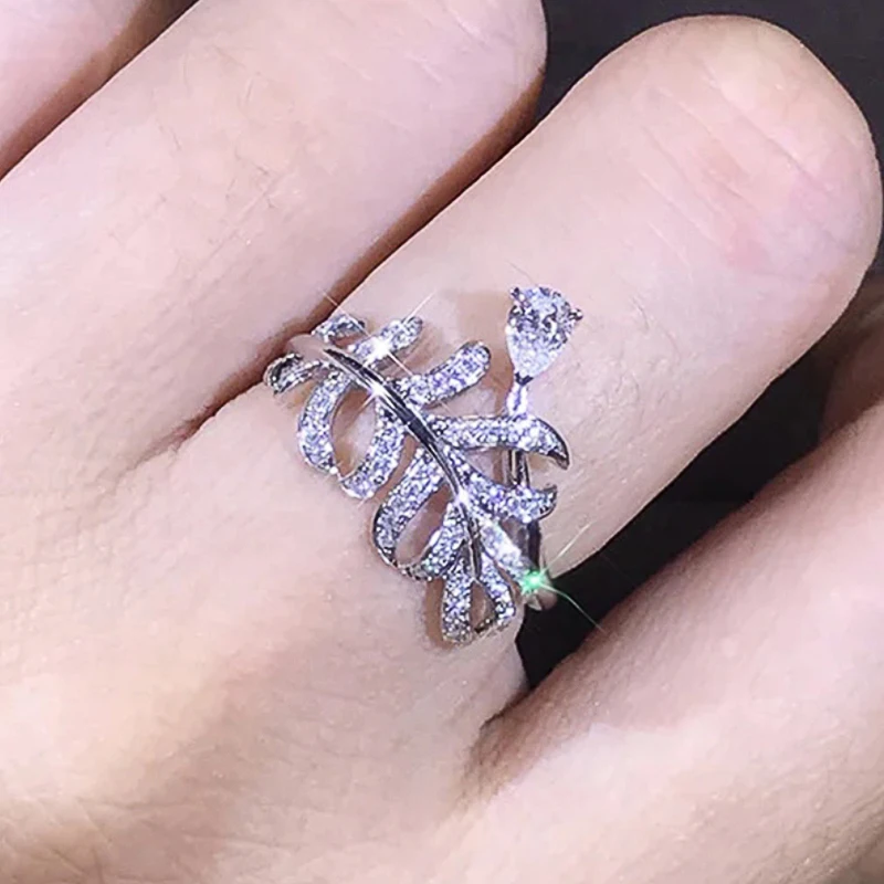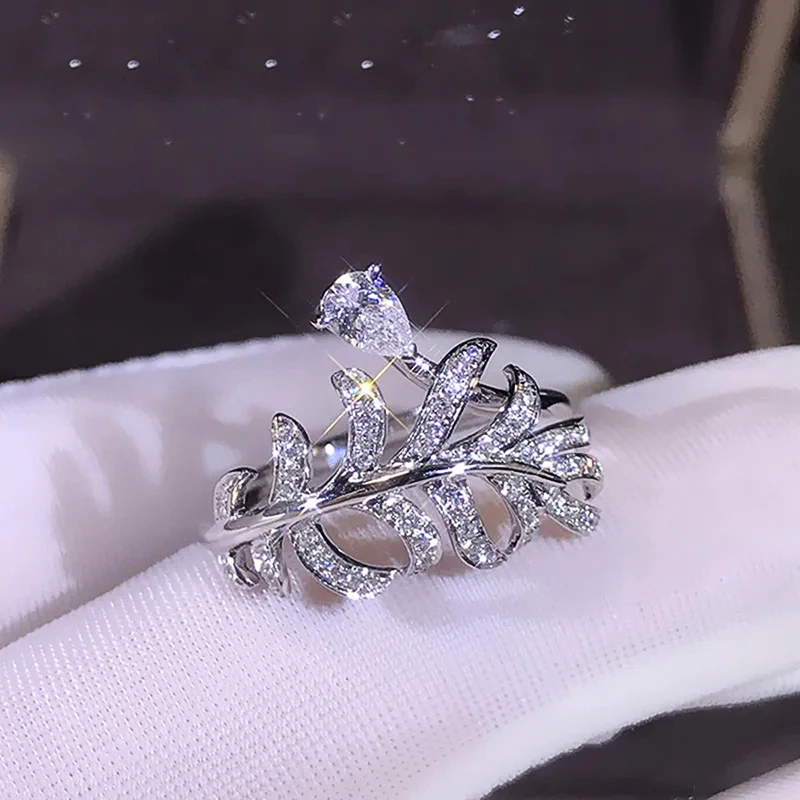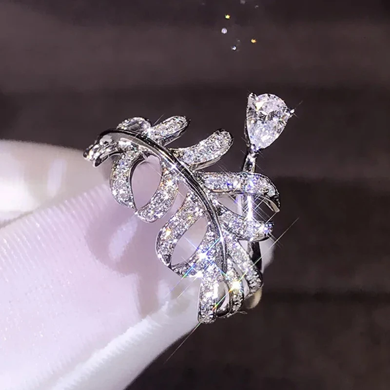 Huitan Exquisite Women Rings Leaf Design Brilliant Waterdrop Cubic Zircon Luxury Wedding Accessories Statement Rings New Jewelry