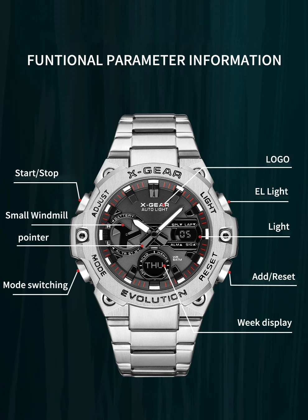 Feature: Shock Resistant,Water-Resistance,Alarm,Week Display